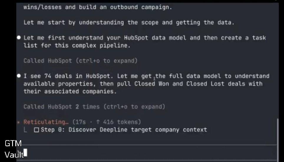 This episode: Jai Toor walks through the Niche Signal Discovery skill built on top of Claude Code and DeepLine, a workflow that pulls wins and losses from HubSpot, mines the differential signal between them, and exports a verified-lead outbound campaign into Lemlist end-to-end from a single terminal. The system compresses a month of manual propensity work and nearly two thousand dollars of enrichment spend into thirty minutes and under ten dollars. The breakdown below maps the build back to the Revenue Architecture.